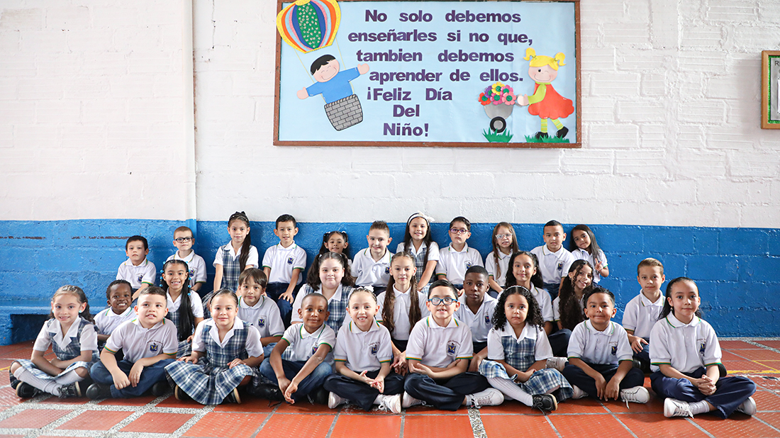 Teresita Atehortúa Rivera, se entrevistó con el Párroco Jorge Mario Acosta, con el fin de estudiar las necesidades apremiantes de educación para los niños de este barrio, donde se atendían dos grupos anexos a la Escuela Oficial Sor María Luisa Courbin, en una caseta perteneciente a la acción comunal. En vista del estudio hecho y la urgente necesidad de abrir más grupos, se dio al servicio de la comunidad educativa dos grupos más: uno por parte de las Escuelas Populares Eucarísticas y otro oficial, pero siempre dependiendo de la Escuela Sor María Courbin.